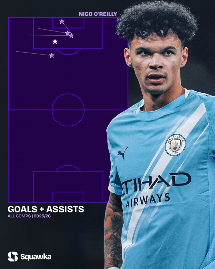 他还助攻格瓦迪奥尔破门,这意味着他在伊蒂哈德球场的最近四场英超比赛中都有进球或助攻: